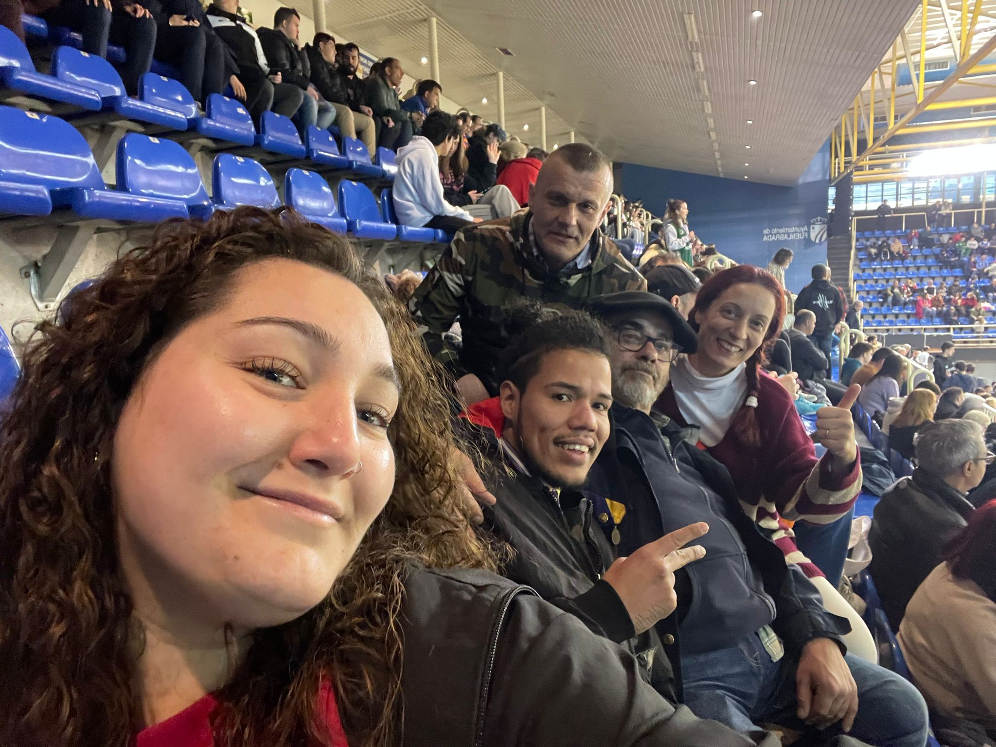 Miguel, Janusz, Fabián, Juan Miguel, Sara y Susana disfrutan de un partido reñido entre los dos equipos.