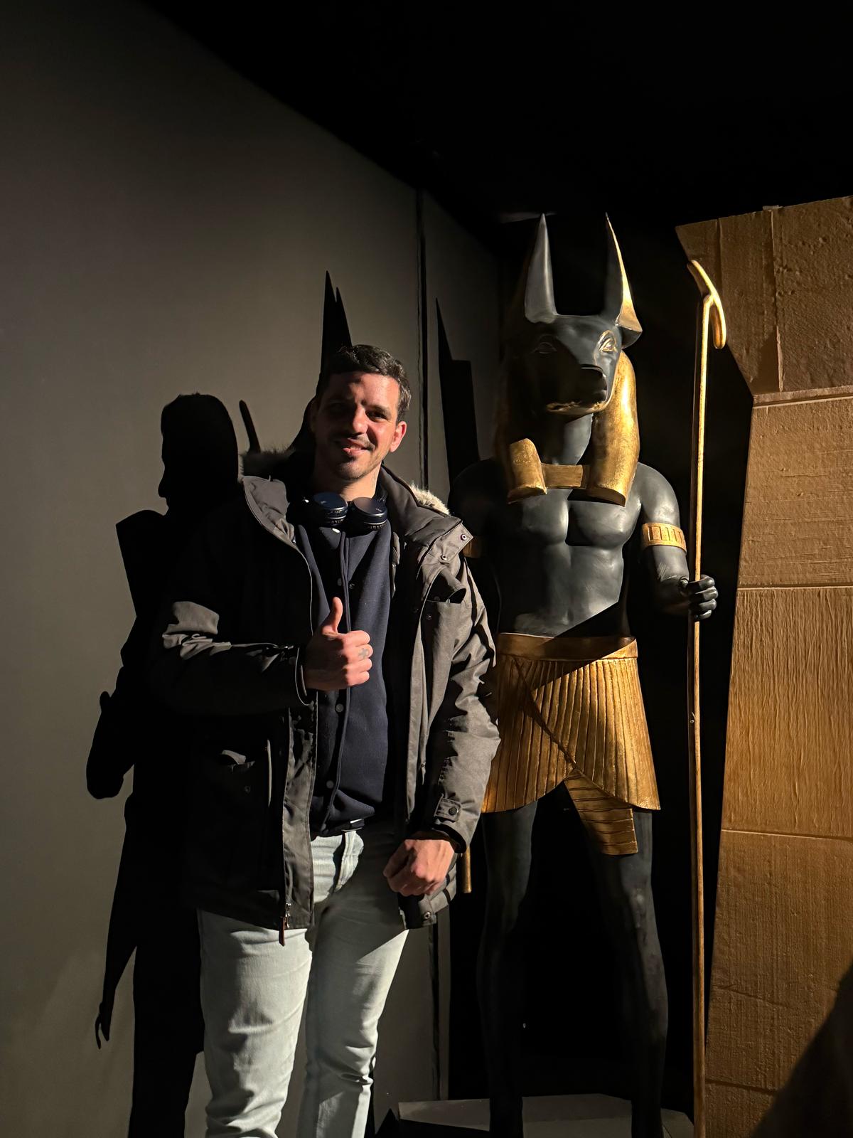 Entre estos elementos destacan las esfinges de personajes históricos como Nefertiti y Amenofis II, y de dioses egipcios como Anubis y Osiris a tamaño real junto con sus capillas, en las que pudimos conocer sus historias y contexto social de la época. Otro de los elementos relevantes son las pirámides, de las cuales pudimos descubrir su estructura interior, las diferentes salas que presentaban y para qué estaba destinada cada una de ellas. Pudimos presenciar también diferentes tesoros de Tutankamón y varios objetos relacionados con la muerte, entre ellos la colección de Ushabtis, los diferentes amuletos con sus respectivos significados, la malla funeraria, los vasos canopos, y una representación del proceso de momificación. De igual manera pudimos conocer diferentes rituales y creencias que tenían, como el Juicio del Corazón o el Zodiaco de Dendera.