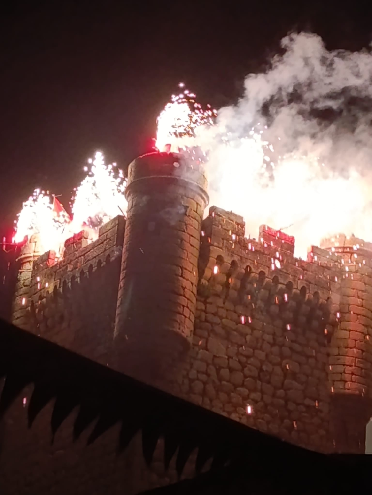 Para finalizar, vimos el pasacalle de antorchas y contemplamos los fuegos artificiales y la quema de la torre del castillo.