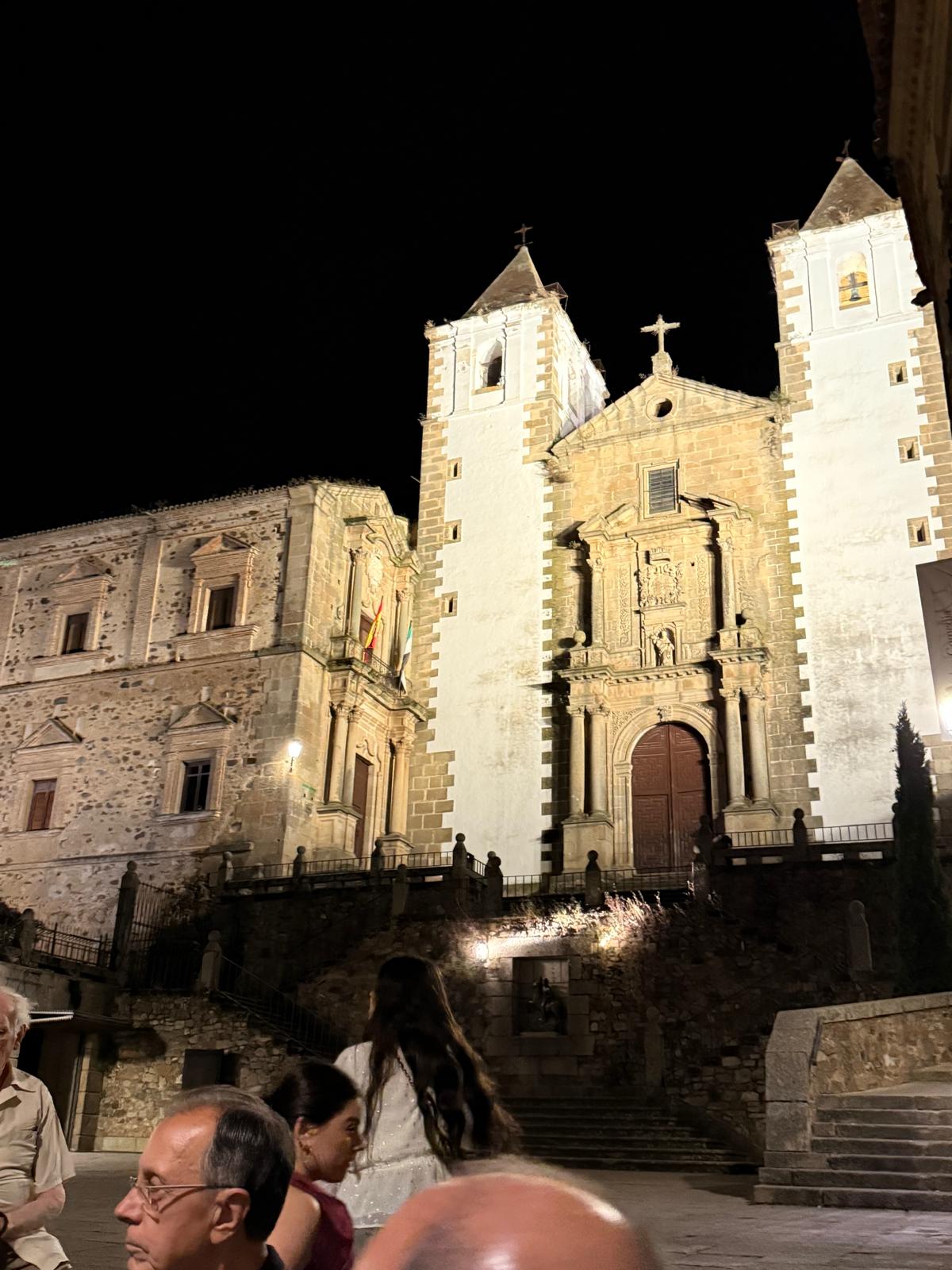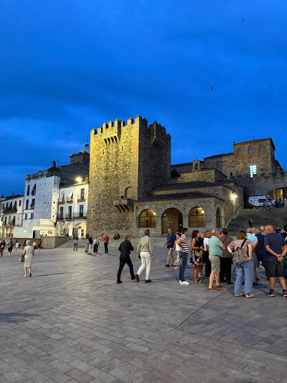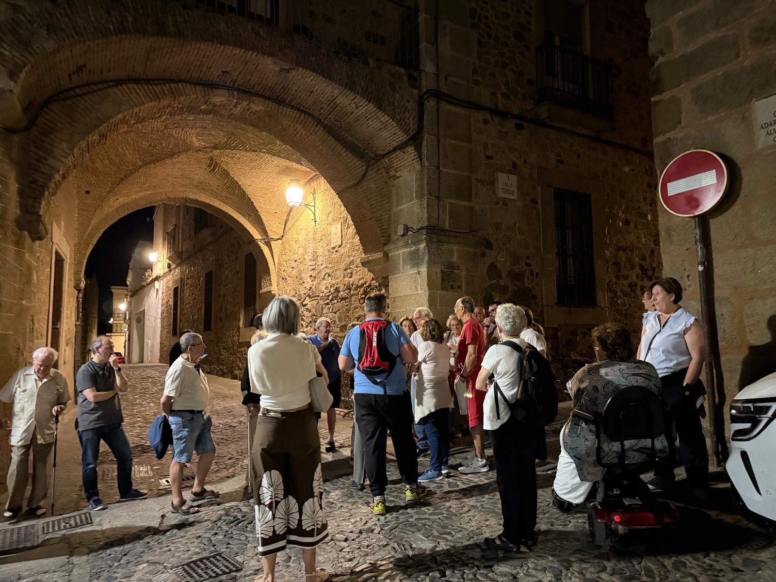 En otro orden de cosas, los voluntarios de Cáceres nos obsequiaron con un botecito de "Lascas de pimentón de la Vera" y por la noche nos acompañaron a la visita nocturna del casco viejo, con el mejor guía posible, así lo dijo un miembro de la Policía Local, D. Santos Benítez, Presidente de las Cofradías cacereñas.